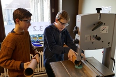 Het gonst momenteel van de gezellige bedrijvigheid in de techniekklas, waar de eerstes bezig zijn met hun veertiendaags STEAM-project. Ze ontwerpen ofwel een stoel in karton of een race-autootje uit alle mogelijke recyclagemateriaal. In een eerste fase vissen ze uit hoe ze hun ontwerp realistisch kunnen maken, en daarna moeten ze echt aan de slag, wat voor heel mooie taferelen zorgt.