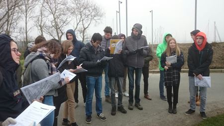 Terwijl de andere jaren examens aflegden, trokken de zesdes in de week voor de paasvakantie op excursie voor (onder andere) aardrijkskunde. Ze bleven dicht in de buurt, met enkele grondboringen in Zoutenaaie en de verkenning van Cap Blanc Nez en het natuurreservaat de Ijzermonding. Het weer zat niet helemaal mee, maar het werd toch een heel leerrijke dag.